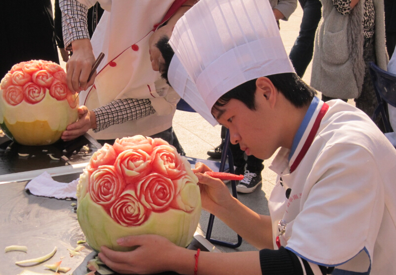 华南学子西瓜雕刻栩栩如生,也让广大学生家长叹为观止。“这是西瓜啊?都不忍心吃了!”“太厉害了”“太漂亮,太不可思议了!”家长们毫不吝啬地把赞美送给这些雕刻品。当然,也有不少学生质疑“是不是真的都可以做得出来啊?”要想知道可不可以做得出来,那就赶快到华南看看吧!华南期待各位美食爱好者到华南烹饪学校学习交流。