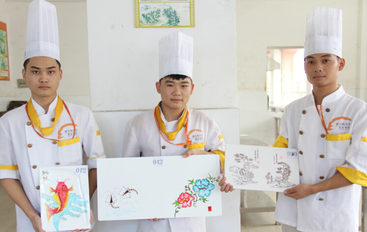 漂亮的盘饰围边总是能给美食增添几分漂亮,也为客人带去几分食欲,果酱盘饰、中餐盘饰、西餐盘饰、立体盘饰、简单盘饰,这些在日常生活中都可以见到,完美的盘饰艺术尤如为菜肴穿上了一件彰显个性的服装,极富艺术感染力的盘饰作品,不仅能诱人食欲,给人一种艺术的精神享受,更提升了菜品的多层附加值,增加竞争力。相信,广西华南烹饪学校的学生不仅能够在这里学到专业的厨师技艺,也可以学到适合现代餐饮行业发展的时尚技术,对学生的毕业大有好处。