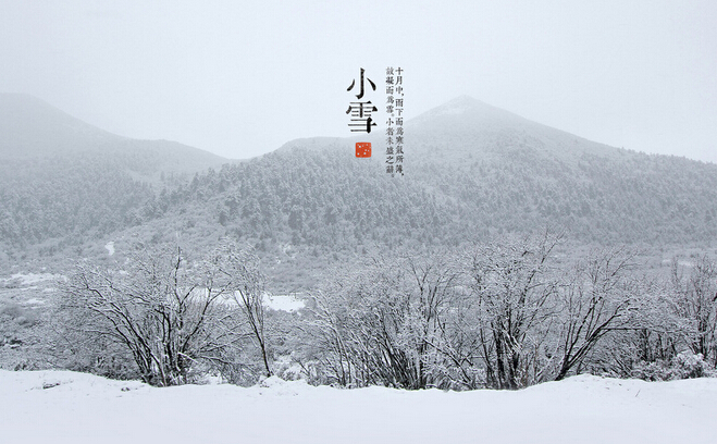 小雪,二十四节气之第二十节气,在太阳到达黄经240°,表示开始降雪,雪量小,地面上无积雪。古籍《群芳谱》中说:“小雪气寒而将雪矣,地寒未甚而雪未大也。”这就是说,到小雪节气由于天气寒冷,降水形式由雨变为雪,但此时由于“地寒未甚”故雪量还不大,所以称为小雪。因此,小雪表示降雪的起始时间和程度,和雨水、谷雨等节气一样,都是直接反映降水的节气。