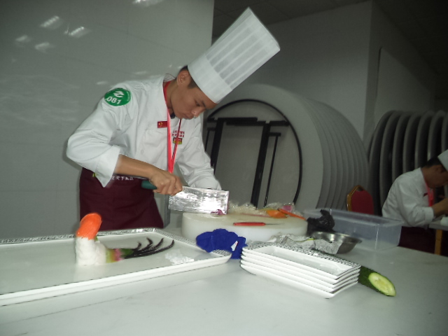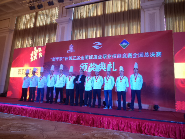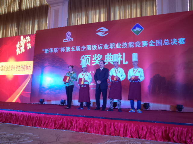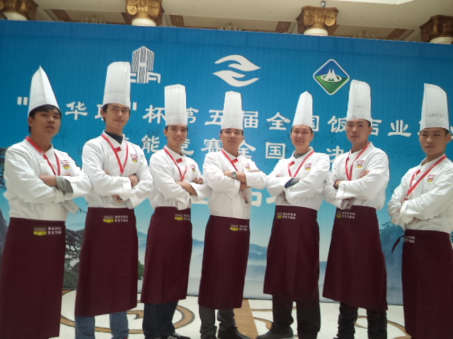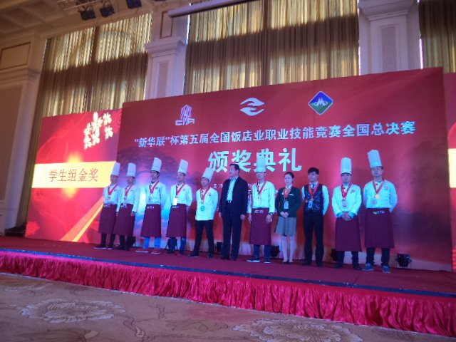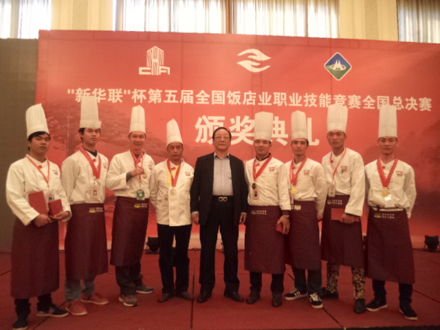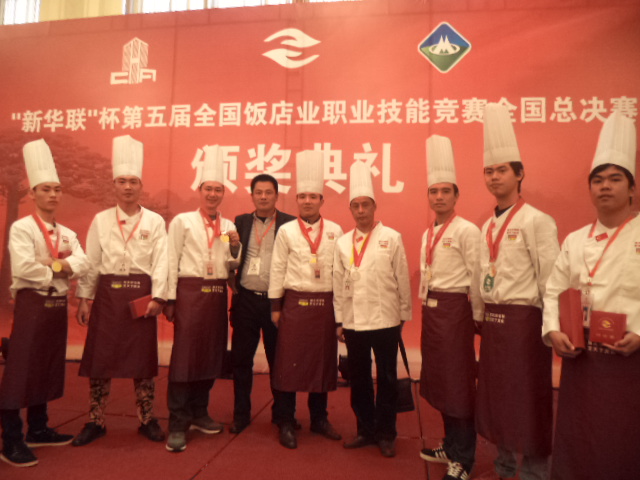 广西华南烹饪学校作为参赛学校代表之一,对此次大赛高度重视,精心准备,参加了食品雕刻、冷拼、热菜个人单项赛中式烹调师项目的比赛。参赛选手以扎实的功底和精湛的技艺,向全国展示了广西华南烹饪学校高超的技艺水平。其中老师组:杨罗银老师获得了冷拼特金奖、黄冲老师获得了雕刻特金奖、卢兴来老师获得了热菜金奖;学生组:潘龙获得了冷拼特金奖、潘雄伟获得了雕刻金奖,黄业获得了冷拼金奖、邱文苗获得了雕刻金奖,同时潘雄伟、潘龙两位同学荣获“全国饭店业青年学生技能标兵”荣誉称号。