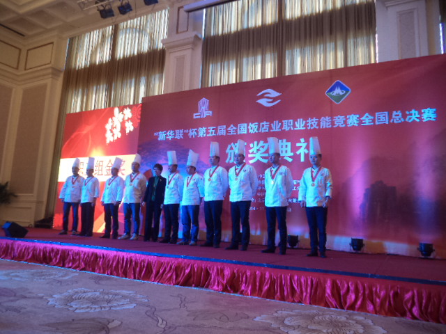 群英荟萃,厨林盛宴,决战黄山。11月22日,“新华联”杯第五届全国饭店业职业技能竞赛全国总决赛在黄山纳尼亚小镇盛大开幕,来自北京、天津、上海、安徽、广西、河南、山东、湖北等15个省的近200位参赛选手齐聚美丽的黄山脚下,为中国饭店的最高荣誉而拼搏,通过烹饪绝技展示、展台筵席比拼等竞赛项目展开激烈竞争。比赛现场刀工与勺工齐飞,雕技与拼技共舞,选手们用实力与激情奉上了一出精彩纷呈的美食盛宴。