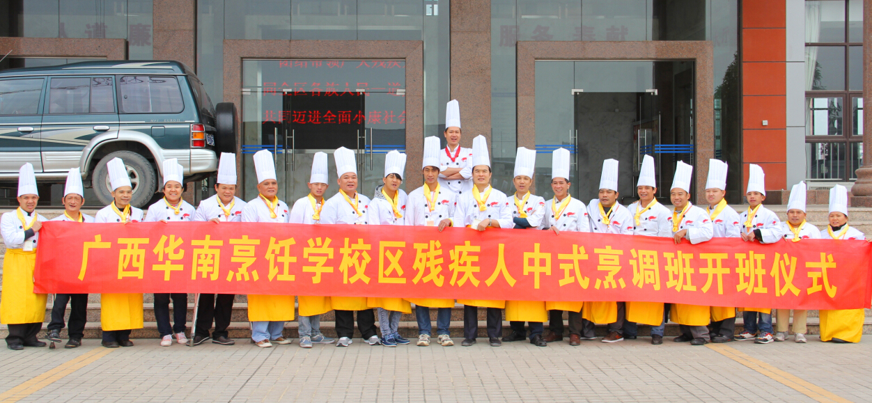 为贯彻落实《广西壮族自治区实施残疾人就业条例办法》精神,全面提高残疾人职业技能水平,促进残疾人适应就业市场需求,我校联合自治区残联举办2014年区残疾人中式烹调技能培训班,学员通过学习后能够掌握初级中式烹调的基础理论和操作技能等让学员结业后经考核合格可以取得初级中式烹调师职业资格证书,为就业打下良好的基础。