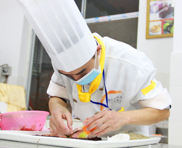 广西华南烹饪学校第二十届烹饪大赛冷拼组比赛现场