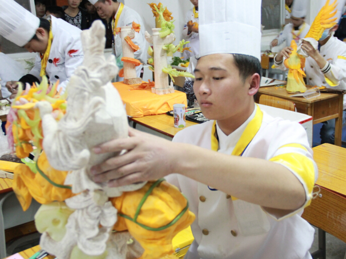 广西华南烹饪学校第二十届烹饪大赛雕刻组赛场