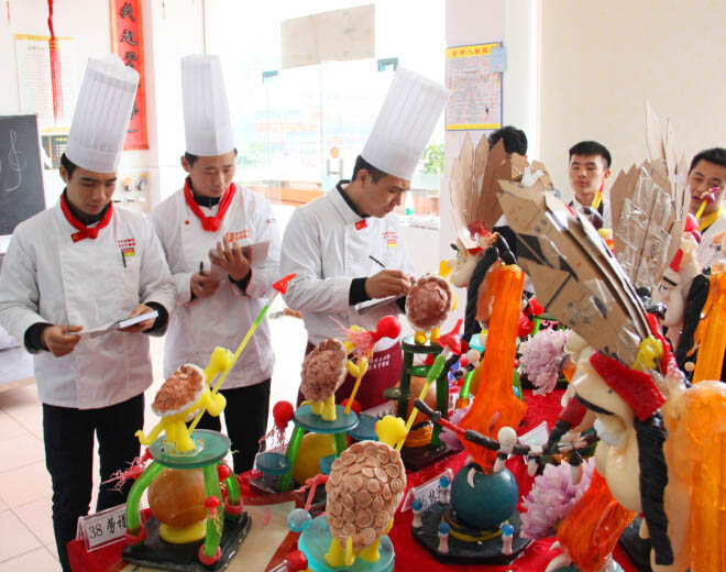 糖艺晚班自从成立以来受到了广西华南烹饪学校学生的大力欢迎和支持,很多学生为了能够让自己多学点技术,纷纷报名学习。金牌教室糖艺晚班作品展就是这个班级在这段时间学习的一个成果展示,也向更多的学生传达了糖艺技术的精妙和魅力。