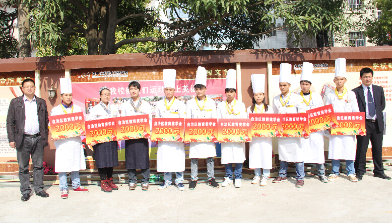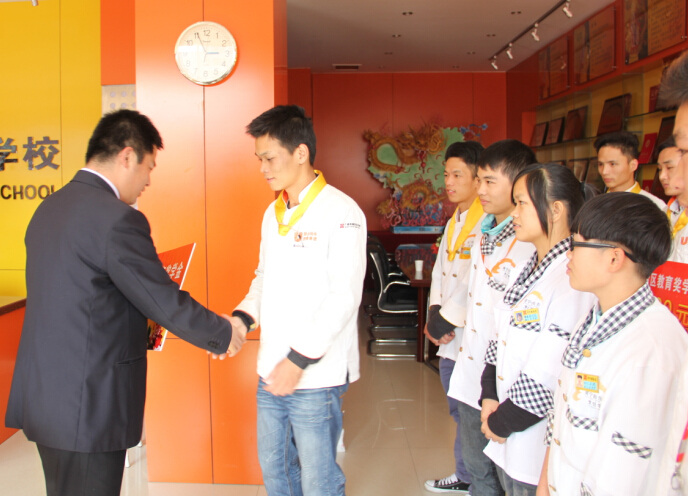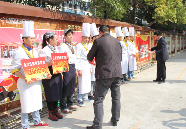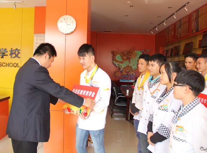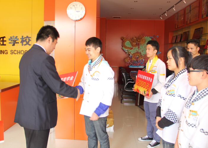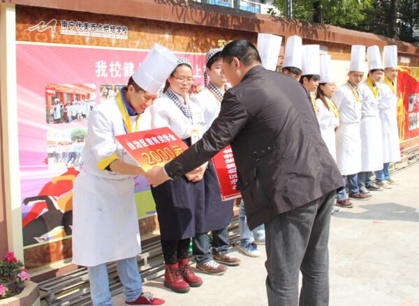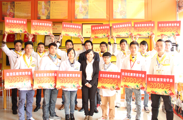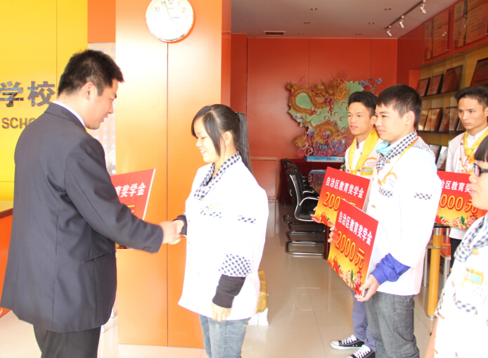 为鼓励我校学生努力学习、奋发向上,促进良好学风校风建设。近日,我校在招生办大厅隆重举行广西华南烹饪学校2014年度自治区政府教育奖学金颁奖表彰大会。广西华南烹饪学校校长、校区专业负责人朱伟、教务科老师代表等出席了颁奖仪式。