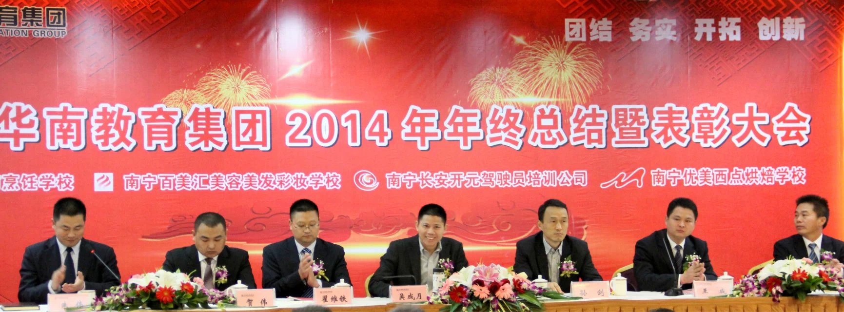 鞭炮唱响羊年到,锣鼓喧天欢声笑。2月2日上午,华南教育集团广西院校举行了2014年度工作总结暨表彰大会。参加本次大会的有华南教育集团董事长吴成月,广西华南烹饪学校、南宁百美汇美容美发彩妆学校、南宁长安开元驾校全体教职员工。