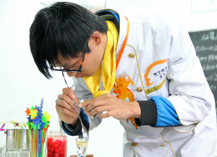 调酒师作为餐饮业的重要一员,扮演着重要角色,因此,在餐饮领域对调酒师拥有较为严格的职业要求。调酒作为广西华南烹饪学校重要的教学课程由著名的调酒大师伦剑老师亲自指导。