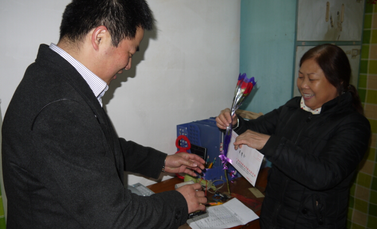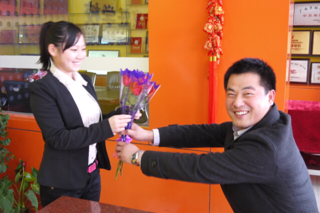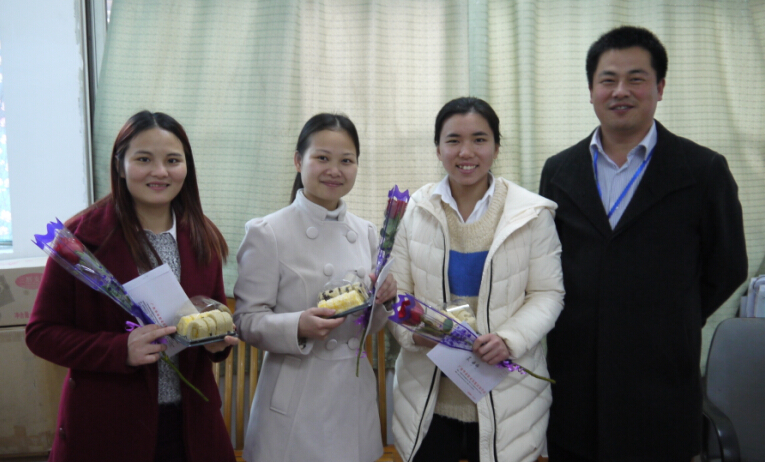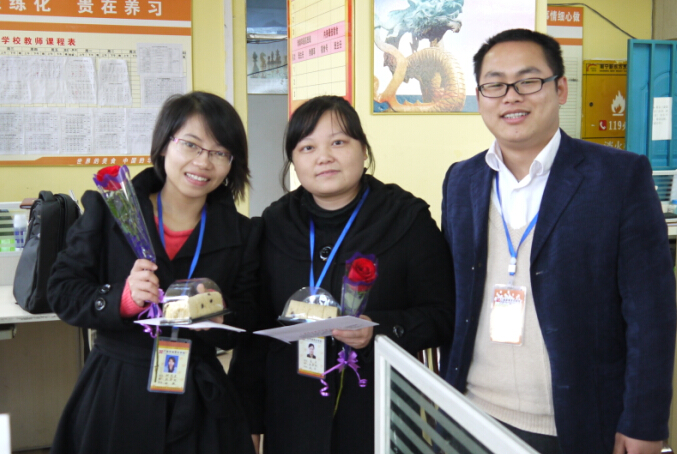 校区负责人朱伟老师为女老师献上节日的鲜花