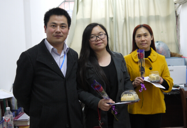 校区负责人朱伟为各部门女老师献上了特意准备的蛋糕与鲜花表达祝福,详细询问了大家的工作与生活情况,肯定了她们在日常工作中所取得的成绩,赞扬了她们勤勤恳恳、兢兢业业的高度敬业精神和奉献精神,对她们为学校发展作出的贡献表示感谢并给予了高度评价。同时提出希望,希望女教职工们以发展赢得尊重,以优势赢得地位,以诚信赢得信誉,以贤惠赢得和谐。