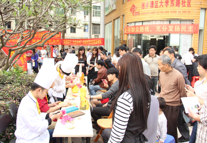 三月是一个春光明媚、生机勃勃的季节,三月更是一个学雷锋、树新风,让志愿服务精神传播的季节。3月22日上午,我校积极组织华南志愿服务队参与到活动中,开展了“学雷锋·能帮就帮”进社区服务群众活动,为社区居民群众提供现场烹饪咨询、同时让居民群众欣赏了一场精彩的雕刻作品展。