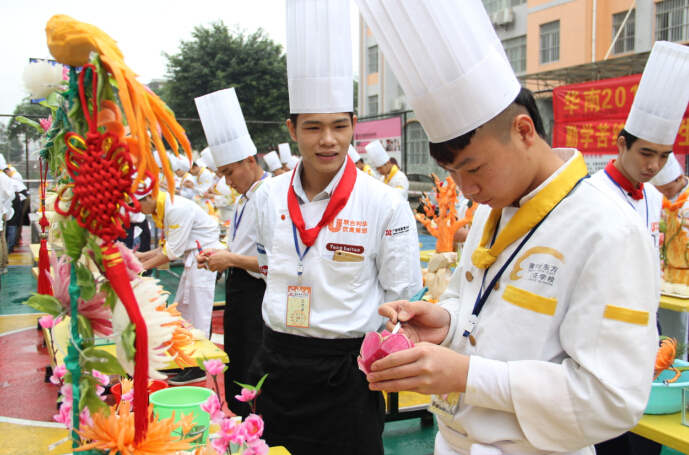 为了提高学生对烹饪艺术学习积极性,打造形成崇尚技能、刻苦学习的氛围,3月25日上午,广西华南烹饪学校大学路校区隆重的举行了2015年第一届“花王争霸”赛,整个校园里萦绕着紧张而激动的气氛。