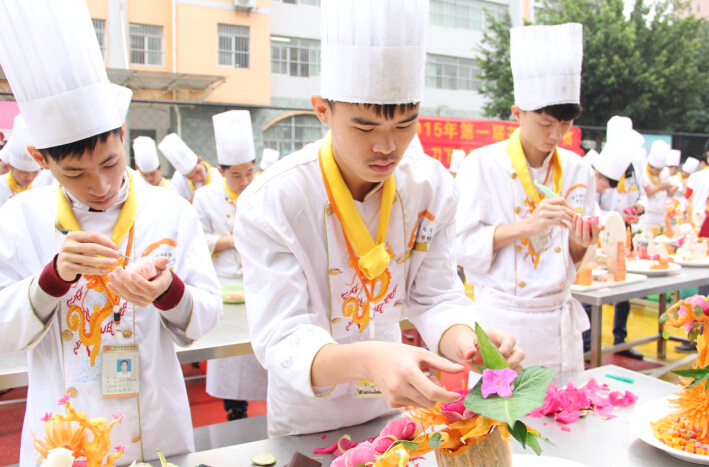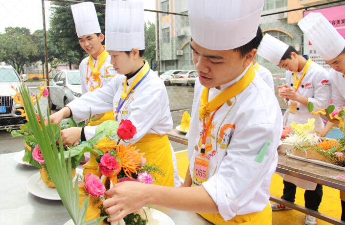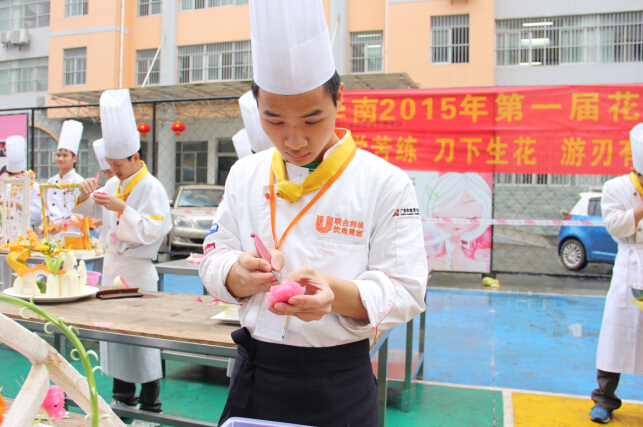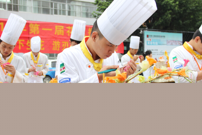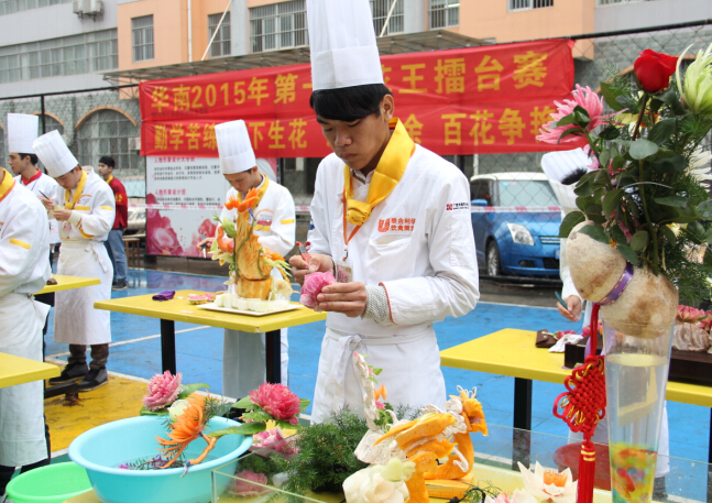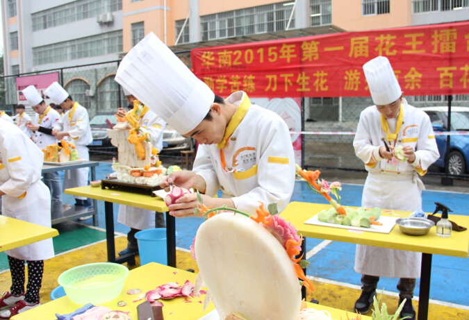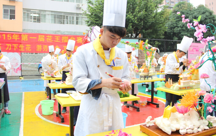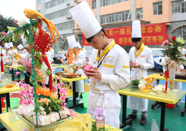 为了提高学生对烹饪艺术学习积极性,打造形成崇尚技能、刻苦学习的氛围。3月25日上午,广西华南烹饪学校大学路校区隆重的举行了2015年第一届花王争霸赛