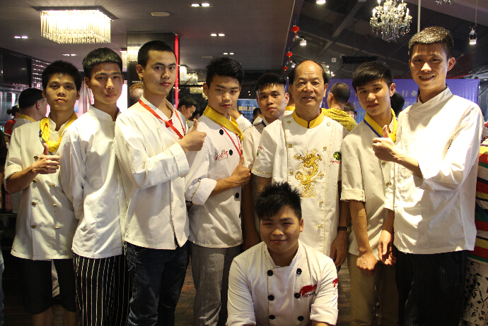 我校学子与广西烹饪餐饮协会副会长何逸奎大师合影
