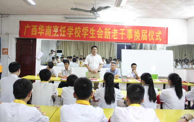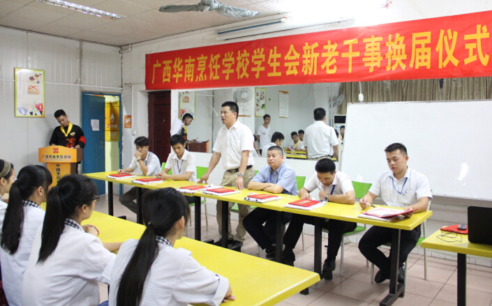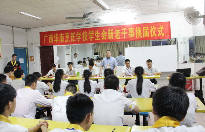 广西华南烹饪学校大学路校区学生会换届大会现场