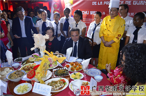 ÔÚ“ÖйúÄꔻÖУ¬ÎÒУÖìΰºÍÌÕÕÕÆðÁ½Î»´óʦÏò·¨¹úÁôÄáÍúÃñÖÚչʾÀä²ËÆ´ÅÌ¡¢ÑçϯµÈ¾ßÓÐÖйúÌØÉ«µÄÃÀʳ£¬Ãæ¶ÔÁáÀÅÂúÄ¿µÄÖÐʽ²Íµã£¬Íâ¹úÓÑÈËÆÈ²»¼°´ýµÄÆ·³¢ÆðÀ´£¬·×·×ÊúÆð´óÄ´Ö¸ßõßõ³ÆÔÞ¡£ÃÀʳ¿ÉÒÔ´Ù½øÈËÓëÈËÖ®¼äÓÑÒêµÄÔö½ø£¬ËûÃÇÆÚ´ý×ÅÓë¹ãÎ÷»ªÄÏÅëâ¿Ñ§Ð£¸ü¼ÓÃÜÇеĺÏ×÷£¬Ò²Ï£ÍûÓлú»áÄܵ½¹ãÎ÷»ªÄÏÅëâ¿Ñ§Ð£À´Ñ§Ï°Éú»î£¬¸ÐÊܲ»Ò»ÑùµÄÖйúζµÀ¡£