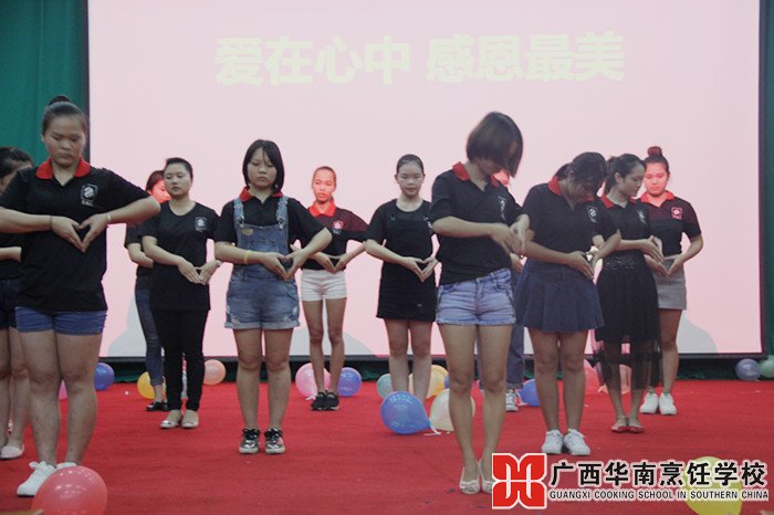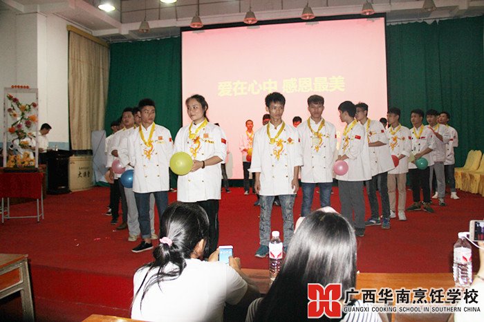 5月9日晚,由广西华南烹饪学校主办的“爱在心中感恩最美”主题晚会在中尧校区礼堂举行。我校朱伟副校长及家长代表出席晚会现场,数百名师生观看了晚会。