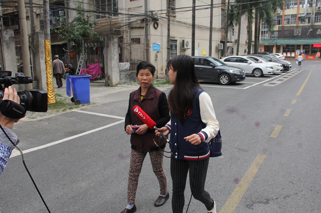 3月3日上午,在中尧社区工作人员的带领下,南宁电视台的记者走进了甘素珠阿姨目前在职的广西华南烹饪技工学校。开始采访这位热心公益的老人。刚开始,甘阿姨并不愿意接受采访,觉得这是一位共产党员应该做得。在社区工作人员的劝说下,甘阿姨接受了采访。记者通过镜头,记录下了甘阿姨“平凡无奇的一天”。