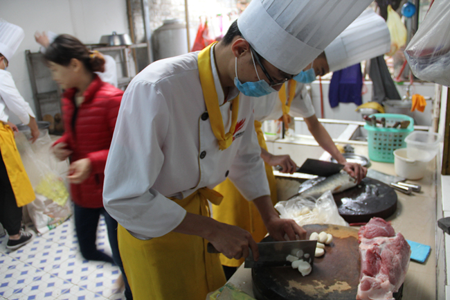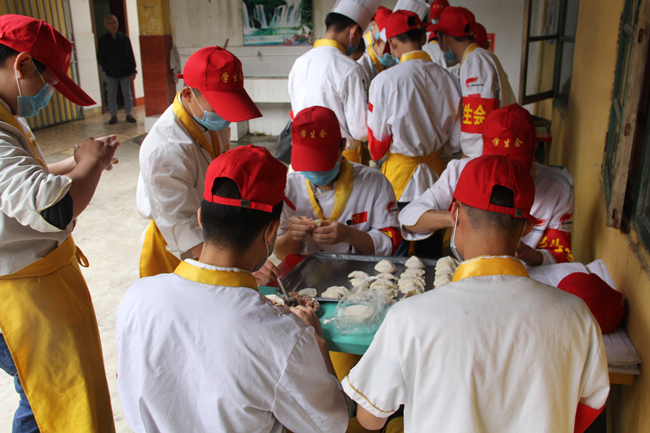 2017年3月5日,广西华南烹饪技工学校学生走进南宁市东海敬老院,进入厨房帮厨。