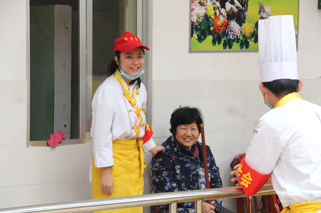 当日,广西华南烹饪技工学校组织学校志愿者走进南宁市东海敬老院,开展了丰富多彩、形式多样的志愿服务活动。青年志愿者走进了敬老院,为该院高龄、孤寡、残疾、空巢老人做一顿可口的午餐、心理慰藉、环境卫生清理等多样化的“上门式”志愿服务项目。一进门,志愿者就撸起袖子,有的进入厨房帮厨,有的打扫卫生,有的陪老人们说话赢得了老年人的笑声。志愿者活动以实际行动传承和弘扬了雷锋精神。
