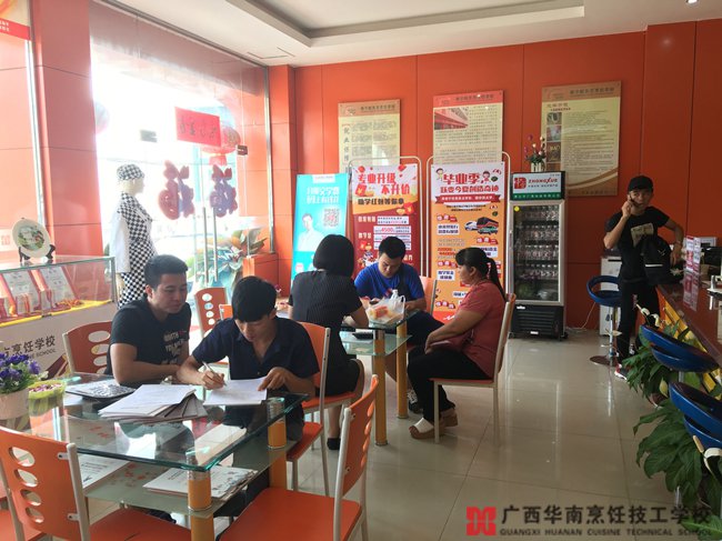 2017年中高考已告于段落,广西华南烹饪技工学校也迎来了夏季报名高峰期,不少初中高生与家长一起来到广西华南烹饪技工学校参观、报名。