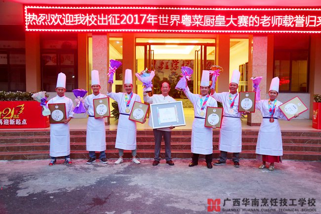 2017年世界粤菜厨皇大赛总决赛于9月7日在中国香港落下帷幕。本次大赛我校共派六人三组参加获两金一铜佳绩。我校教师凌荣、周焕翔分别荣获粤菜热菜组金奖。我校教师苏婷婷、陆达贵分别荣获中点组铜奖。