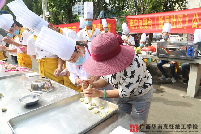 今天上午,我校联合《新闻社区》栏目走进茅桥社区,现场教居民制作香葱曲奇饼。