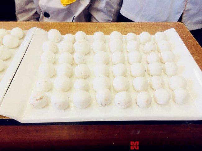 老师们精心准备下,餐桌上摆满了面粉和馅料。不一会儿功夫,一只只元宵就包好了,虽然形态各异,大小不一,但却是属于自己的劳动成果。当热气腾腾的元宵端上桌时,大家抑制不住内心的喜悦,迫不及待地品尝起来。