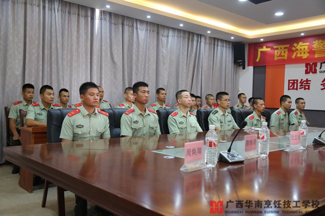 5月24日,广西海警总队培训班开班典礼在广西华南烹饪技工学校隆重举行。培训时间为为期50天,共有22名士兵参加了此次烹饪技能培训!