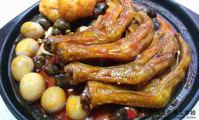 田螺鸭脚煲,顾名思义,主要原料就是鸭脚和田螺。要分出各家田螺鸭脚的高下,关键就在田螺汤。田螺汤由田螺和八角、丁香等10多种天然香料配制而成,每种香料放多少有着严格的比例,哪样多了点或少了点,味道都会大不相同。除了注意配料的比例,还要有充足的时间炖煮,让田螺天然的鲜甜味释放出来,这也是美味的关键点。说着说着口水都要下来了。