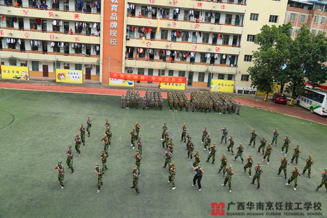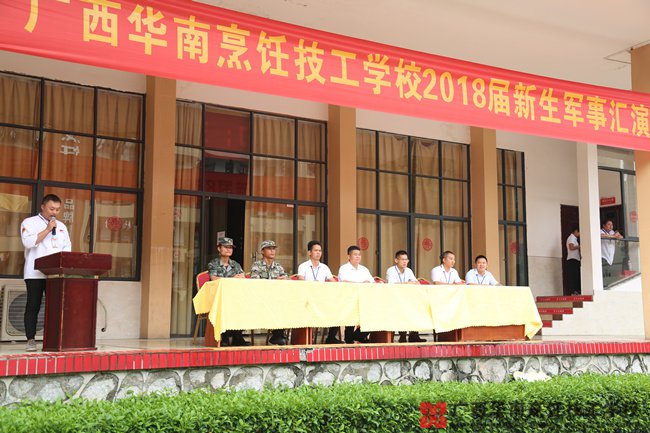 8月17日下午三点,广西华南烹饪技工学校2018年秋季新生军训会操表演在中尧校区操场上举行。