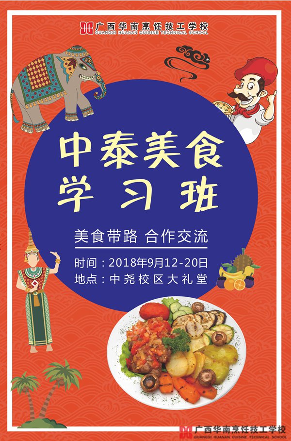 定了定了,广西华南烹饪技工学校中泰美食学习班就要开班啦。这是我校首次与泰国烹饪学校开设的美食学习班,旨在通过深化美食人文交流,增进互信和理解,推动“一带一路”创新合作,以应变未来餐饮业的变化。培训内容包括桂菜课程、泰菜课程、座谈交流等多种形式,全方面多角度的了解中泰美食文化。