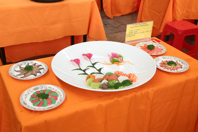 厨房素有“无刀不成菜”之说,刀工的好坏直接决定了一道菜的味道和美观程度。看这个一盘盘精美的食品拼盘作品,就知道这些选手的刀工是多么的扎实。