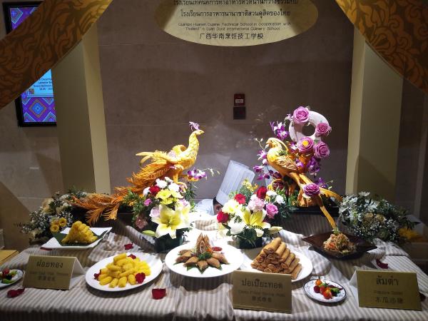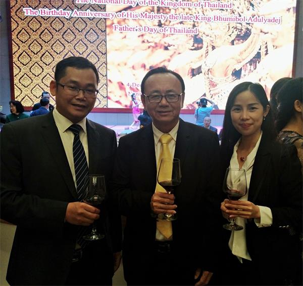 12月4日,应泰国驻南宁总领馆代总领事蔡乐蓬蒂窝拉卫的邀请,我校校长赵志权出席泰国国庆招待会。招待会上,我校学子还制作了泰国美食展台,以表示祝贺。