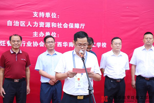广西华南烹饪技工学校校长赵志权、广西烹饪协会会长曾大文先后发言,他们均表示,为了弘扬广西桂菜餐饮文化,加强桂菜餐饮特色人才的培养,广西烹饪餐饮行业协会与广西华南烹饪技工学校联合打造“广西桂菜专项技能人才培养基地”,以学校、企业、行业协会三方合作为切入点,支持和鼓励桂菜餐饮企业和烹饪大师走进校园,弘扬广西桂菜餐饮文化,打造中国桂菜品牌。
