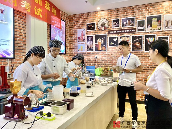 2019年10月10日,广西华南烹饪技工学校“咖啡专项技能认证”第一期正式开考,19名同学参加了此次咖啡专项认证。为了这次考试,同学们进行了为期15天的刻苦学习。