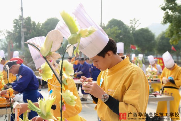 广西华南烹饪技工学校“华南”杯烹饪技能大赛于2019年12月26日在广西华南烹饪技工学校东盟校区圆满结束,通过此次烹饪技能大赛厨艺的切磋,涌现出了一大批构思精巧、造型各异、风味独特的参赛作品,充分展示了华南学子对传统饮食独具一格的承载能力、创新能力、发展潜力。