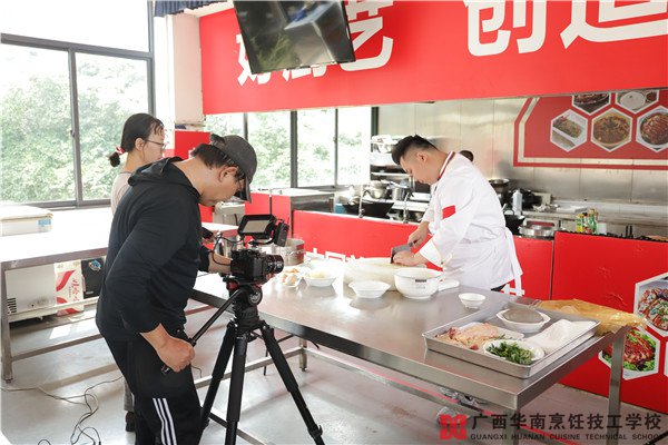 10月12日,广西卫视融媒体记实栏目《我们的小康》到广西华南烹饪技工学校拍摄。内容围绕我校毕业的成功学子黄中昕在校学厨经历展开,对我校终身客座教授何逸奎、授课教师欧自明、就业办主任唐毓得等人进行采访,回顾学子烹饪缘起时刻,展望餐饮行业的无限未来。