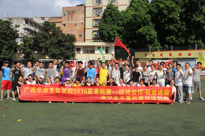 为丰富广大教职工的业余生活,展示我校教职工良好的精神面貌,增强学校凝聚力,在学校人力行政的大力支持下,7月16日,学校组织全体教职工开展拓展活动。学校所领导和教职工一百多人共同参加。 上午9:00时,拓展活