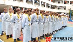 近日,在广西华南烹饪学校中尧校区金牌大厨11、12班和大厨157班进行了抛锅阶段考核,同学们穿着整齐的厨师服在操场上进行抛锅大比拼成为了学校一道亮丽的风景线。 考核前教务主管孙雄洲老师讲话 考核现场同学们一个