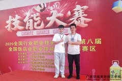 9月25日至26日,以新时代、新技能、新梦想为主题的2020全国行业职业技能竞赛第八届全国饭店业职业技能竞赛(广西赛区)隆重举行,经过激烈的比赛,我校教师陈昭明取得了可人的成绩,荣获广西赛区个人赛金奖。 (图右
