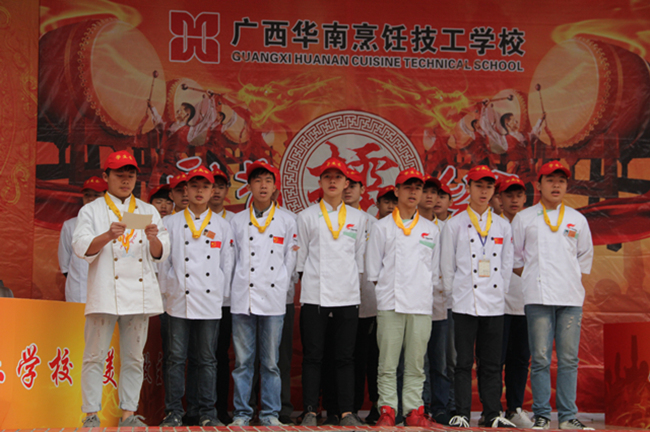 2017年2月17日,广西华南烹饪技工学校首届厨艺擂台赛正式打响,本次比赛由金牌十二班和金牌十三班进行本次擂主的争夺。比赛时间3个小时,两个班级代表队分别完成两道宴席菜肴后交于评委打分,得分高者拿下本次擂主,