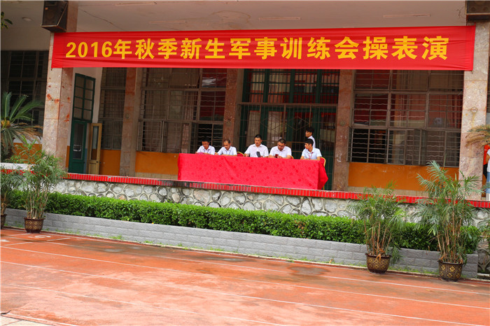 8月26日下午,广西华南烹饪学校2016级为期一周的秋季新生军训进入尾声,军训汇演隆重举行。5支队伍按顺序沿操场排开,接受了年级领导的检阅。一支支队伍通过主席台,稍息、立正、停止间转法、齐步及跑步的行进与立定