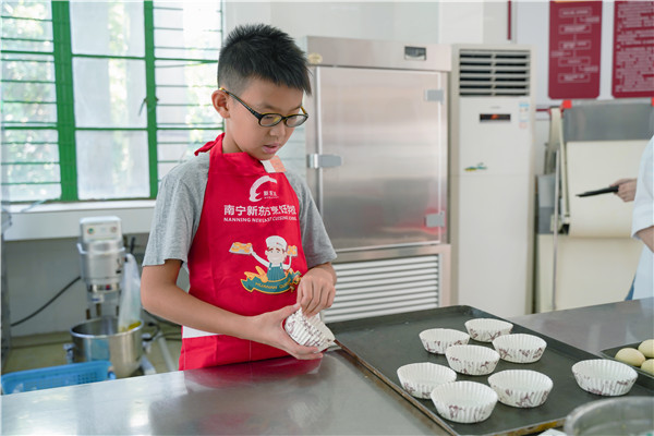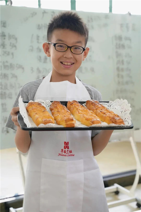 近日,广西华南烹饪技工学校迎来了一位可爱的学员小朋友,他叫宋继亿,今年11岁,趁周末假期之余,来到华南烹饪报读了私人订制专业,开启了他的烘焙学习之旅。
