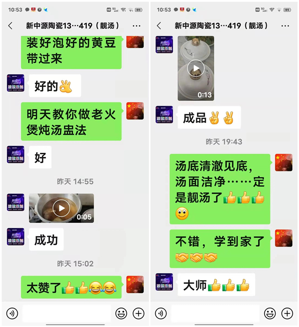 最开始的汤底制作效果不佳,苏凯东并不气馁,他把自己做的成品录了个视频通过微信发给黄大师,黄大师看到后立即指出了问题所在,并给予正确地指导,他及时进行了调整。