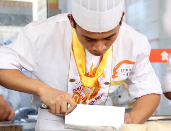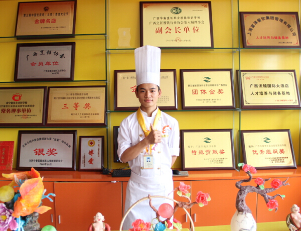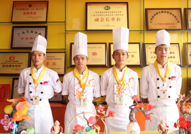 在广西华南一年多的时间了,我不抱怨不气馁,因为这里有着让我们快乐学习的校园环境和丰富多彩的校园活动。每一天,我都过得很轻松,不会和读书时候那样,傻愣愣地坐在教室里面,面对着如小山高的试卷和永远也写不完的作业。虽然,在广西华南学习很轻松,但是学技术也不能放松。有的同学每天早早地起来翻锅练习个半小时,刀工切配,夯实自己的基本功。每天晚上爱雕刻的同学们总是三五成群静静地躲在教室里,不为别的,就为了雕刻出更好的作品。与时间竞争的氛围影响着你我他,因而很多人能够在互相学习和交流和氛围中,主动学习,互相切磋,互相超越。
