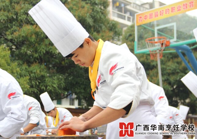 徐叶青平同学说:自己的表哥是一名很出色的厨师,在昆山一个星级酒店就职。所以“厨师”这个职业一直就是他心底向往的职业,在他初中毕业以后便毅然决定选择学厨师。在学校选择的过程中他对广西的厨师培训院校都做了一定的考察和比较,在综合比较之后选择了广西华南。