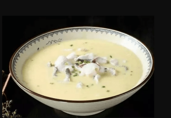 无糖豆浆800-1000毫升,鱼片300克,虫草花30克,生姜蓉、香菜各50克,胡椒粉、花生油、食盐、生粉适量
