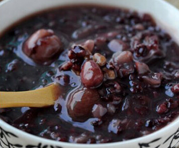 制法:将胡萝卜洗净,切块备用。黑米淘洗干净。起火上锅,加适量水,放入黑米、核桃仁、胡萝卜块,用大火烧开后加入枸杞,再煮开后改用小火煮至米熟即可。