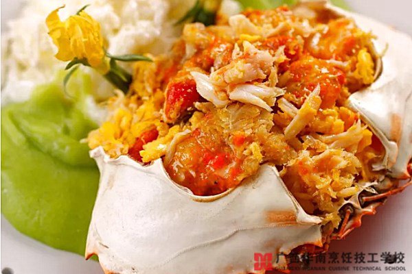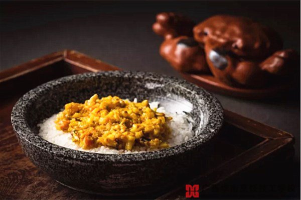 蟹粉的特点是“有鲜而无香,有味但不厚”,需用姜去腥,猪板油增香,使其相得益彰。用蟹粉烹制菜肴、提味增鲜是大厨们的拿手绝活儿,烹饪手法可以拌、炒、烧等,制成功夫大菜,也可做卤、调馅,用于点心、粥品。对拆蟹、熬油、炒制进行调整,做出的蟹粉汁颜色黄艳、滋味醇厚。